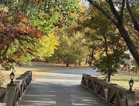 Floral Gardens, patios, 2 ponds with fountain, trees swings, Pergola, and a bridge.